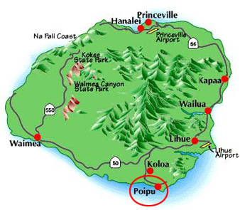About Poipu Kauai's South Shore is famous for its sunny days and excellent swimming and snorkeling beaches. When it is raining on the North Shore, natives just say, "Go to Poipu!" The area has a wealth of historical, scenic and fun sites to visit. Near Poipu, you'll find the National Tropical Botanical Garden, the only garden of its kind to be chartered by Congress. Nearby, as well, is Spouting Horn, where natural lava tube formations create spectacular water effects. Poipu is known for double rainbows after the rains and gorgeous sunsets over the ocean. |